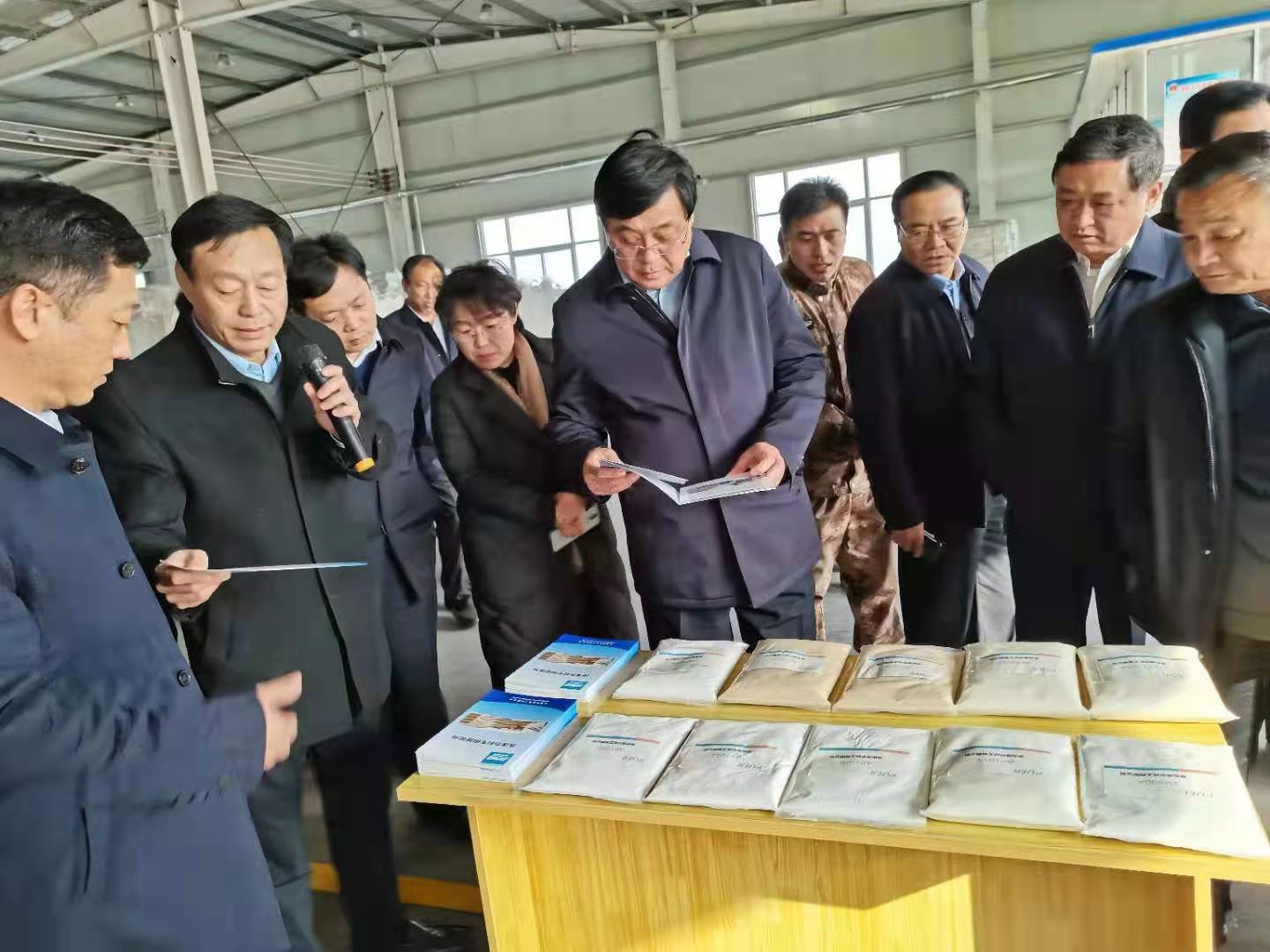2020年12月25日上午,中共東明縣委書記張繼爭,縣委副書記、縣長孫遷國,率團蒞臨普爾阻燃材料生產基地調研。